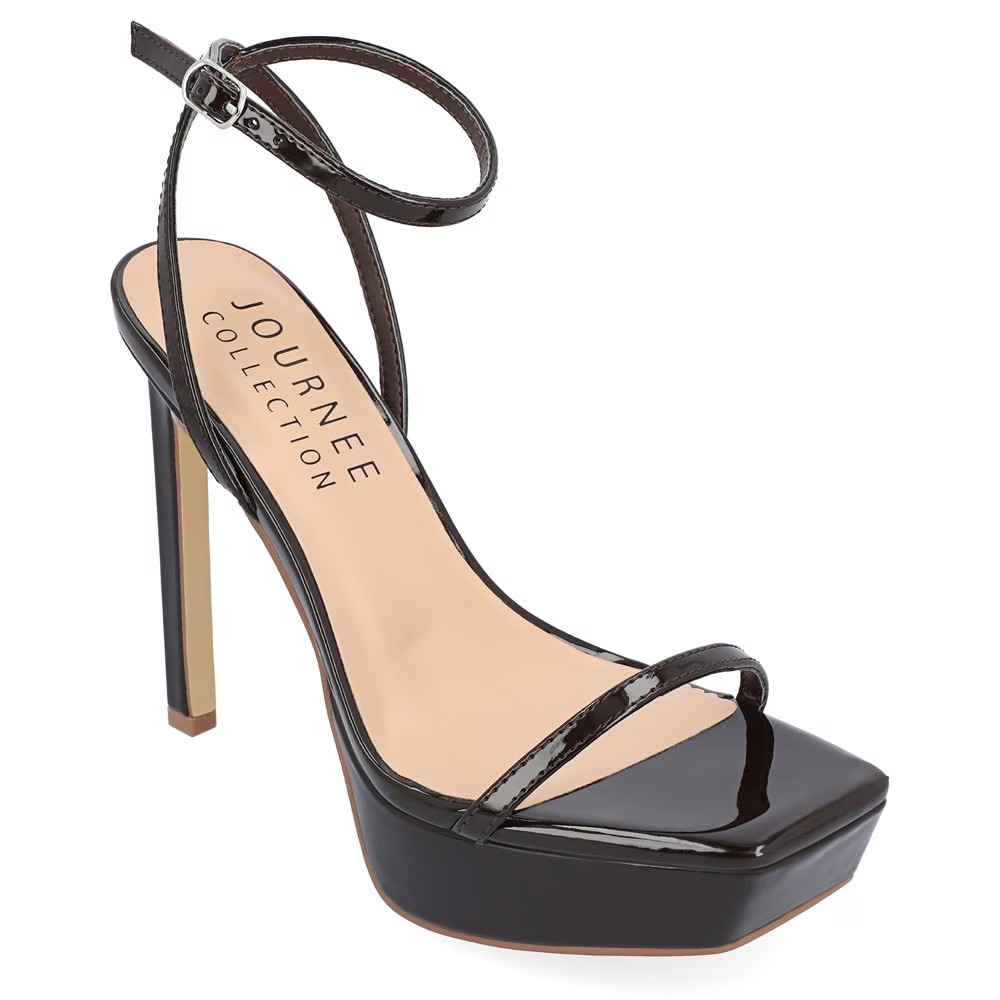 Приобретите новый стиль для своего гардероба с женскими босоножками на платформе Telilah из коллекции Journee. Верх из веганской кожи в босоножках на платформе с открытым квадратным носком Регулируемый ремешок с пряжкой на щиколотке Гладкая подкладка с мягкой стелькой Промежуточная подошва на платформе Прочная искусственная подошва с каблуком-шпилькой высотой 4,5 дюйма.
