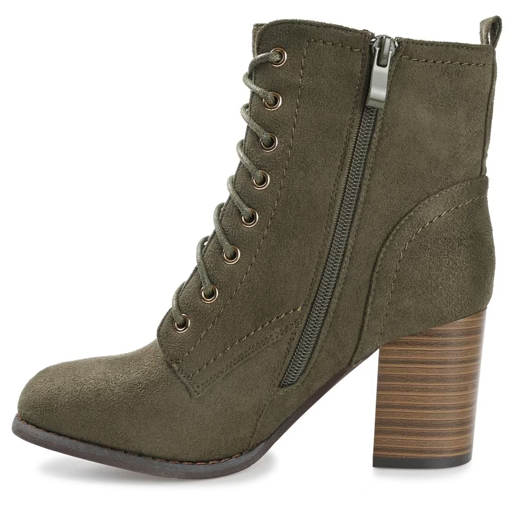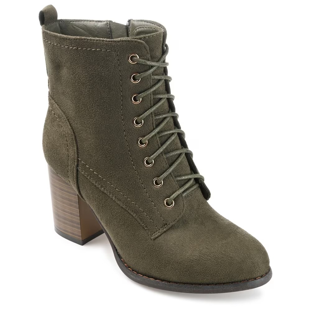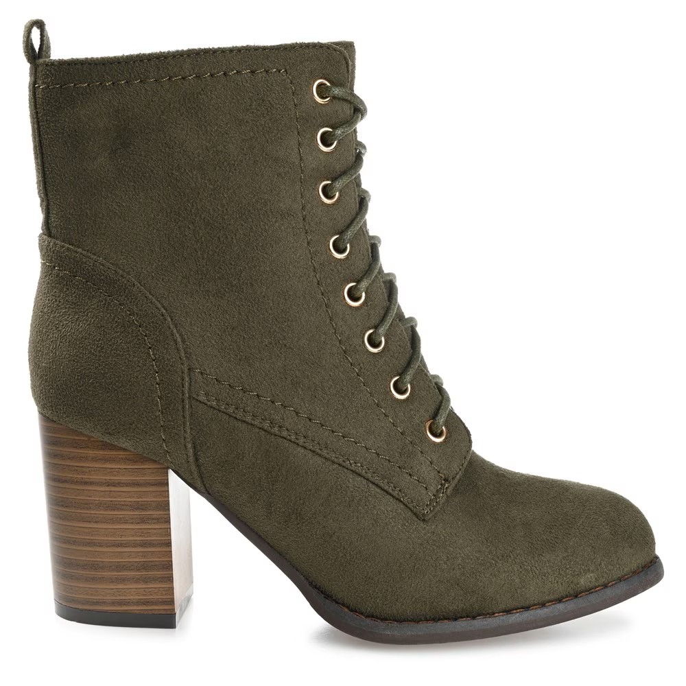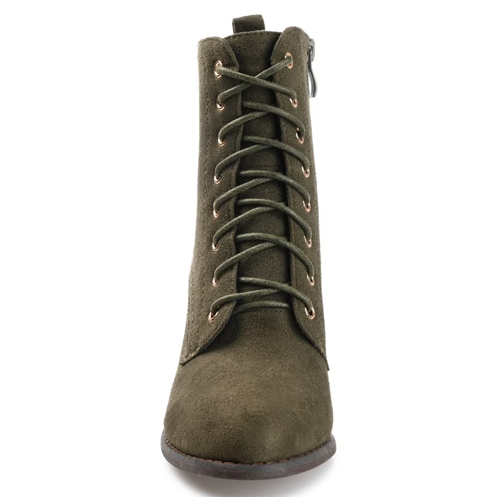 Покажите модный образ с женскими ботильонами Baylor Block Heel Ankle Boots из коллекции Journee. Верх из искусственной замши в стиле ботильонов на блочном каблуке с круглым носком. Шнуровка спереди с металлическими люверсами и язычком сзади. Мягкая подкладка с мягкой стелькой. Прочная подошва с нескользящей подошвой. Высота ботинка 6 дюймов, высота каблука 2,75 дюйма.
