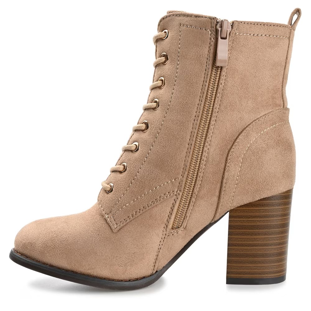 Покажите модный образ с женскими ботильонами Baylor Block Heel Ankle Boots из коллекции Journee. Верх из искусственной замши в стиле ботильонов на блочном каблуке с круглым носком. Шнуровка спереди с металлическими люверсами и язычком сзади. Мягкая подкладка с мягкой стелькой. Прочная подошва с нескользящей подошвой. Высота ботинка 6 дюймов, высота каблука 2,75 дюйма.