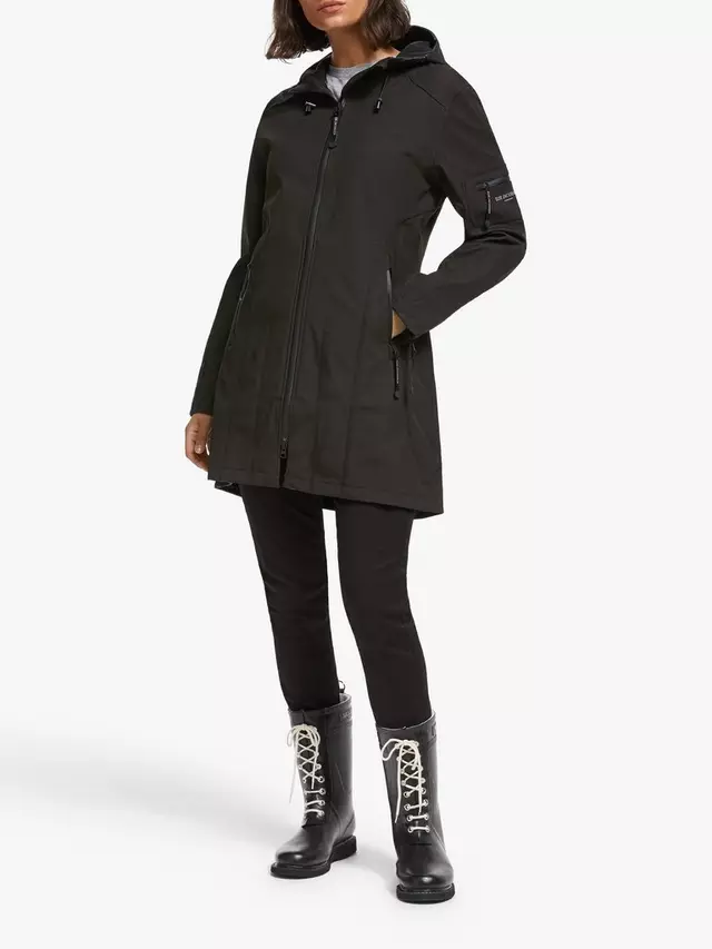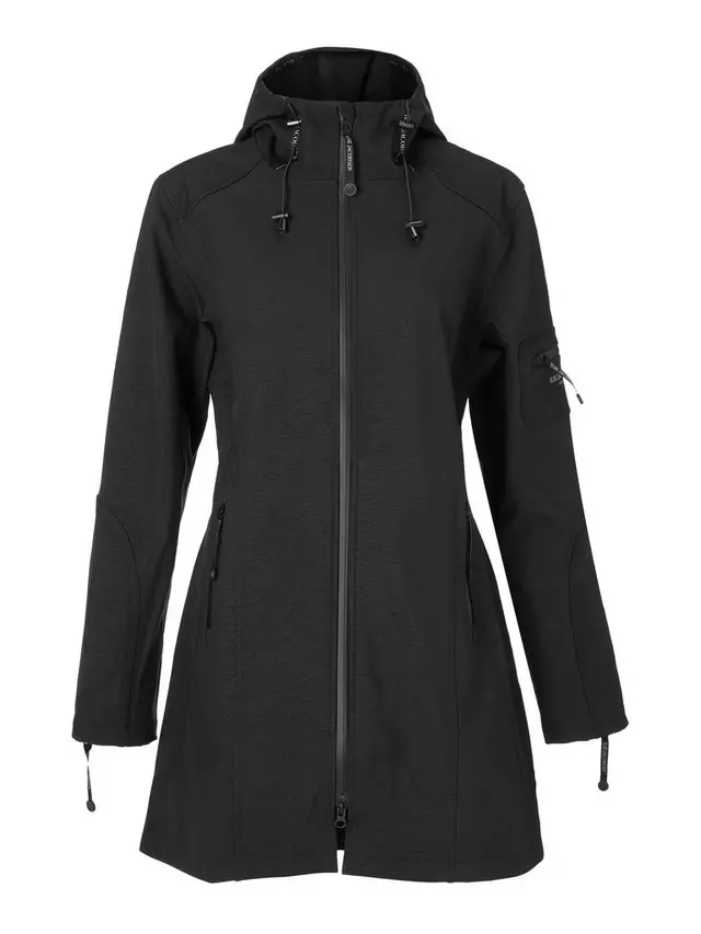 Этот плащ от Ilse Jacobsen Hornbæk подчеркивает женственный силуэт с его чистыми линиями кроя и двойной складкой сзади для свободы движений. Изготовленный из дышащей и эластичной ткани soft shell, которая выдерживает давление воды до 5000 мм, этот стиль оснащен, чтобы выдерживать сильные ливни. С двухсторонней молнией YKK AquaGuard поверхность ткани обработана грязе- и водоотталкивающим покрытием Ecorepel, которое создает невидимый щит - универсальный плащ для езды на велосипеде, походов или сохранения сухости в городе.