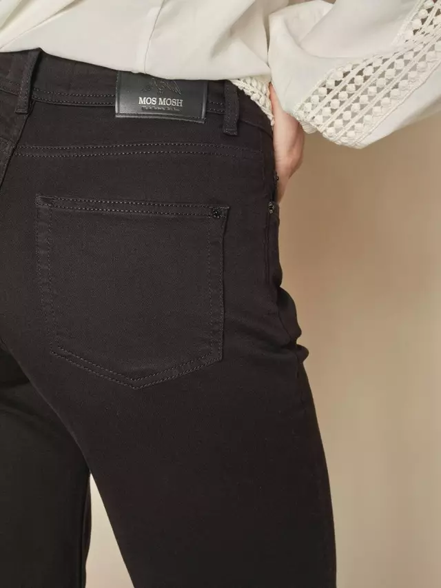 Бренд: MOS MOSH Состав: 43% вискоза LENZING ECOVERO, 33% хлопок, 17% лиоцелл, 5% полиэстер, 2% эластан Страна происхождения: Турция Инструкции по сушке: сушить в стиральной машине при низкой температуре Застежка: потайная молния, пуговица Длина изделия: Обычная Гладить: Гладить прохладной водой Детали узора: Однотонный Заявление об устойчивости: Содержит не менее 40% вискозы Lenzing EcoVero. Тип брюк: Джинсовая ткань Тип и количество карманов: 5 джинсовых карманов