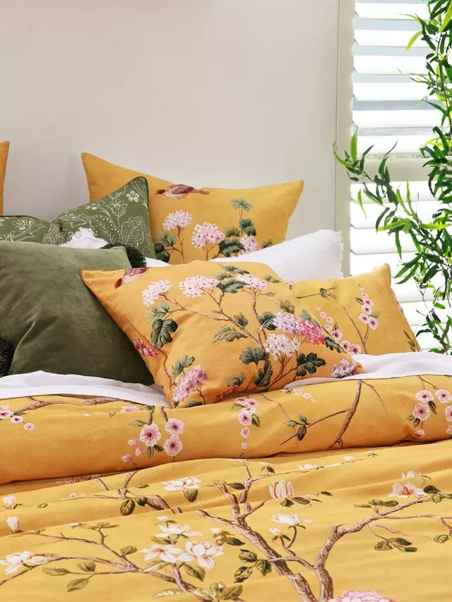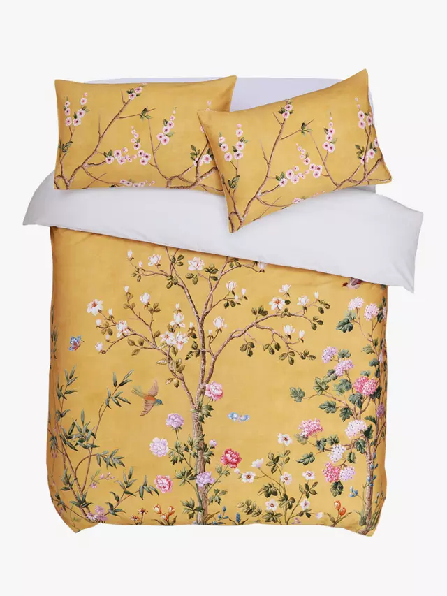 Роскошный и артистичный, Юки — это дизайн очаровательных цветов и фауны на солнечном и мягком золотистом фоне. Он напечатан на чистом хлопковом сатине с простой белой изнанкой. В каждом наборе 2 стандартные наволочки. Вы думали о простынях? Купить здесь.