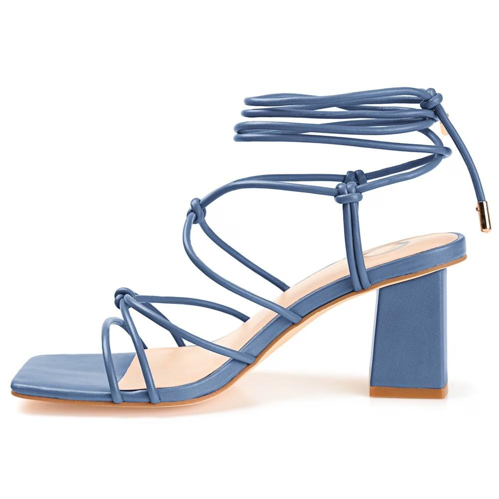 Верх из искусственной кожи в стиле босоножек на блочном каблуке с квадратным открытым носком
