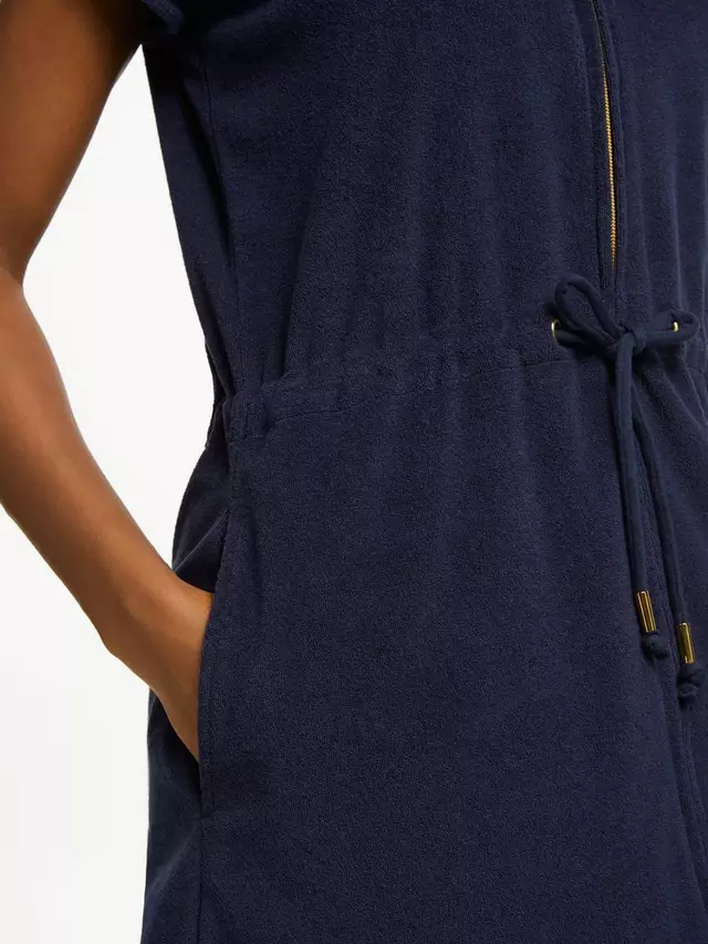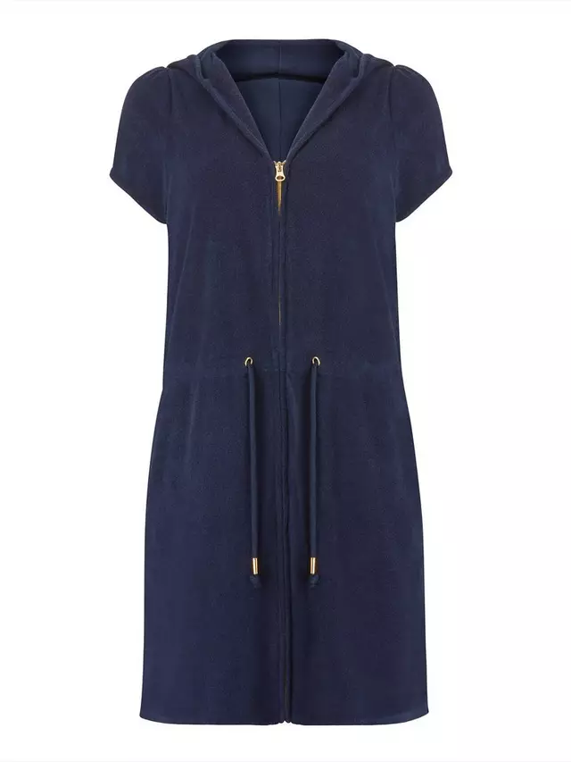 Наше махровое платье на молнии, незаменимое в отпуске, изготовлено из прекрасной и мягкой хлопковой смеси, которая обеспечит вам приятную прохладу и сохранит форму после каждой стирки. Платье длиной до бедра, с застежкой-молнией по всей длине спереди, капюшоном на трикотажной подкладке, удобными боковыми карманами и регулируемыми завязками на талии для идеальной посадки. Наденьте поверх купальника, чтобы выглядеть великолепно на пляже.
