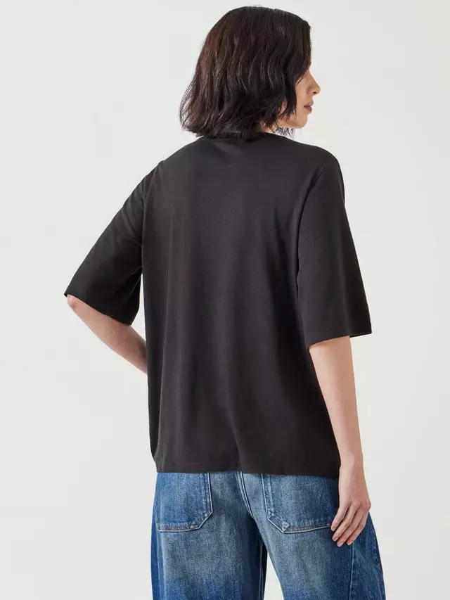 Это наша футболка Reece. Выглядит как обычная повседневная футболка, но это не так. Здесь нет одноразовых дизайнерских решений. Каждая деталь имеет смысл, например, просторные рукава, которые заканчиваются у локтя для более непринужденного ощущения и свободного кроя. А еще есть сверхмягкая вискозная ткань, выбранная из-за того, как она легко ниспадает. Мы все продумали, так что вам не придется этого делать.