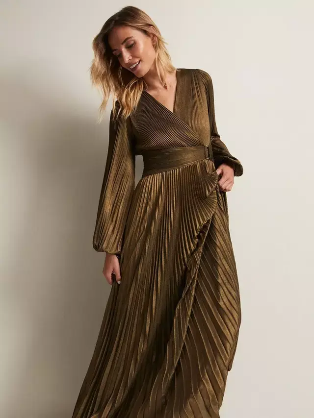 Это макси-платье от Phase Eight, сформированное множеством острых складок, является частью их премиальных стилей Collection 8. С универсальным V-образным вырезом, облегающим лиф, и длинными рукавами-фонариками, оно отличается светящейся металлической отделкой для красивого сияния и движения во время ходьбы. Сочетайте его с каблуками и подходящей сумкой-клатчем, чтобы завершить ваш образ с головы до ног.