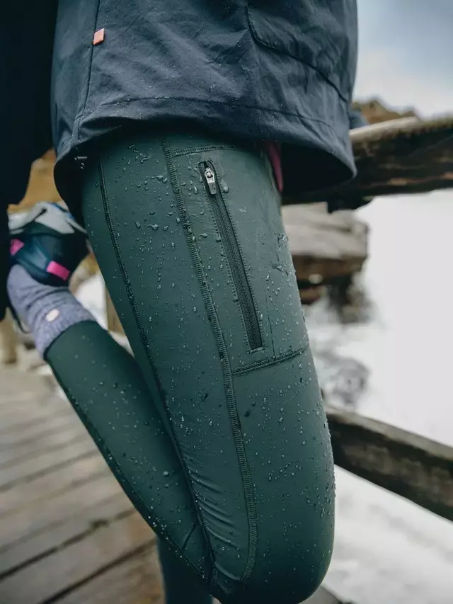 Леггинсы Outdoor Softshell с высокой талией устойчивы к воздействию дождя, легкие, влагоотводящие и дышащие. Изготовлены из эластичного материала Softshell для комфорта, риск натирания дополнительно устранен благодаря бесшовной внутренней части штанины. Стильная и функциональная альтернатива обычным леггинсам, быстросохнущий материал идеально подходит для приключений на открытом воздухе.