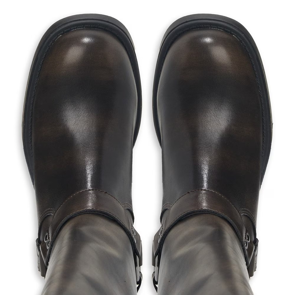 Верх из искусственной кожи в стиле байкерских ботинок с круглым носком