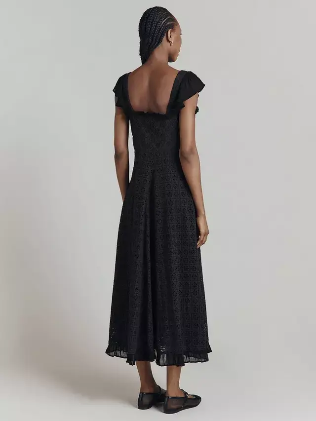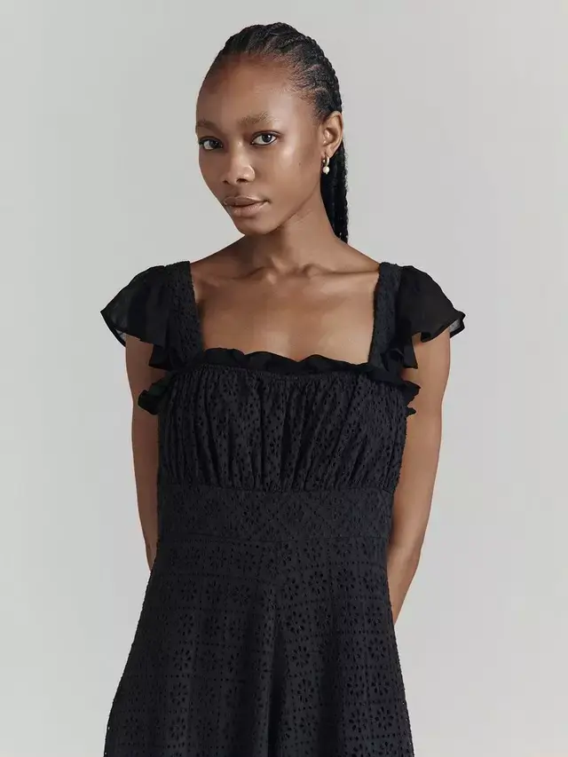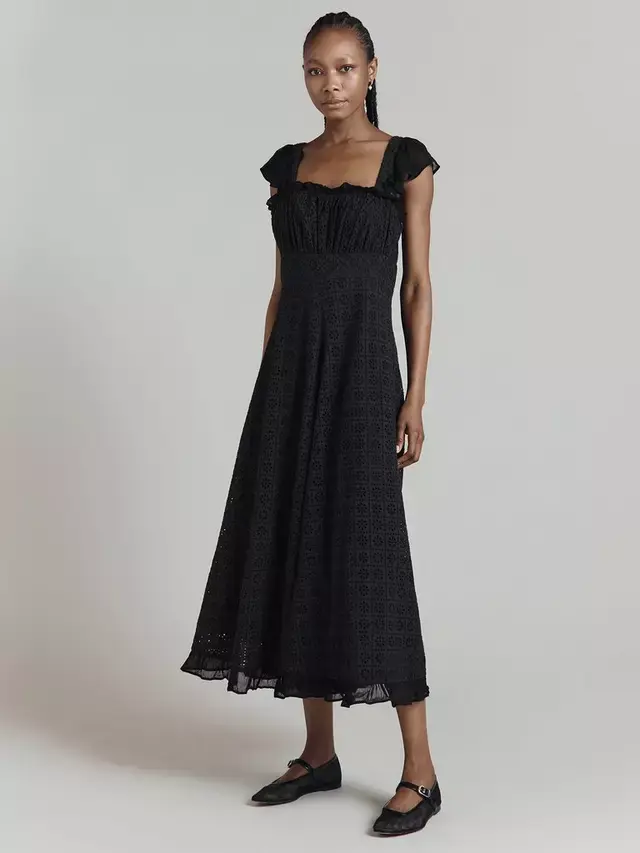 Fleurine — это шикарное платье макси из хлопка, украшенное сложными цветочными узорами. Присборенный лиф, отделанный мягким оборчатым жоржетом, соответствующие рукава-крылышки, потрясающий силуэт в стиле ампир с широким поясом и объемной юбкой — это эффектное платье идеально подходит для самых разных случаев. Полностью на подкладке, с потайной застежкой-молнией сбоку.