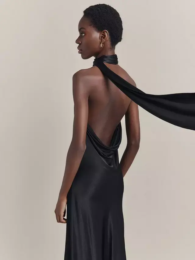 Все о деталях. Встречайте Florence, платье с открытой спиной и халтер-воротником, которое действительно выдержит испытание временем. Оно разработано для длины миди и точно скроено по косой, чтобы оно скользило по фигуре. Шарф с кисточками можно обернуть вокруг шеи для создания романтического образа, что делает Florence идеальным платьем для мероприятий.