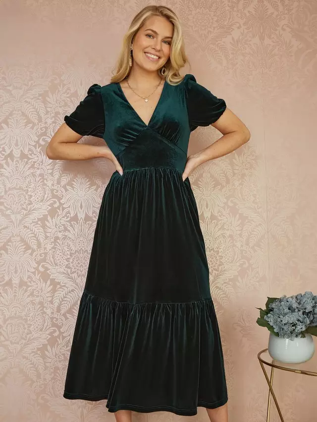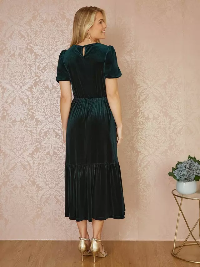 Платье Yumi Velvet Ruched Waist Midi, зеленый