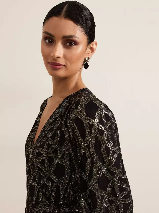 Платье Phase Eight Jazminda Shimmer Wrap Midi, цвет black/multi 17 949₽