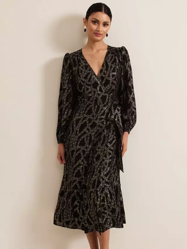Платье Phase Eight Jazminda Shimmer Wrap Midi, цвет black/multi