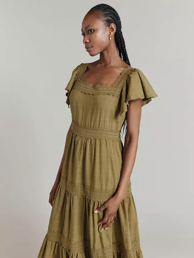 Платье Ghost Renee Tiered, оливковый 8 521₽