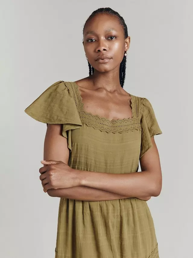 Вы не сможете превзойти многоярусное платье, когда дело доходит до создания красивого силуэта, и это именно то, что может предложить Renee. Сделанные из хлопка с полосатой текстурой, три собранных яруса создают объемную юбку, которая прекрасно сочетается с квадратным вырезом, рукавами-крылышками и широкой вышивкой по всему изделию.