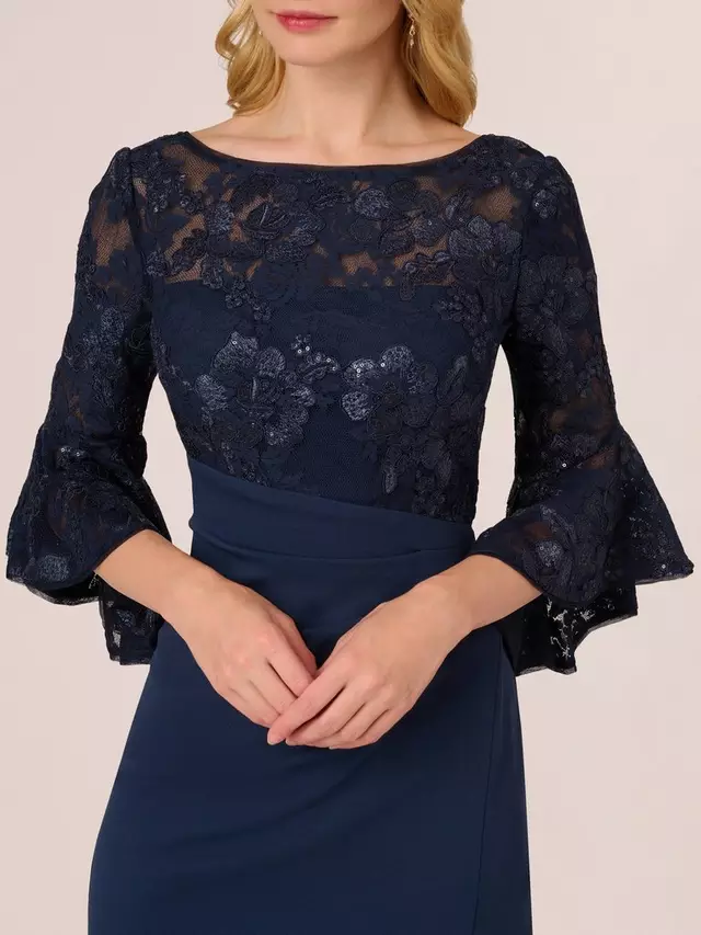 Платье Adrianna Papell Floral Lace Combo Sheath, темно-синий
