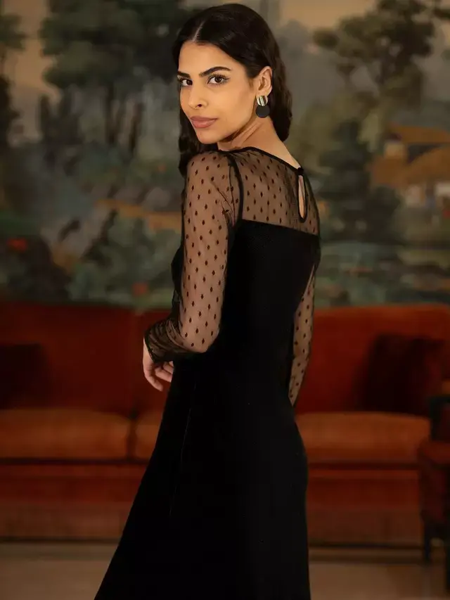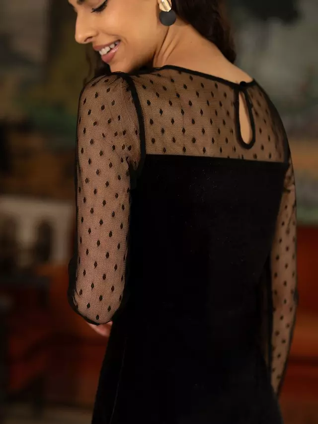 Платье Yumi Velvet Sheer Sleeve, черный