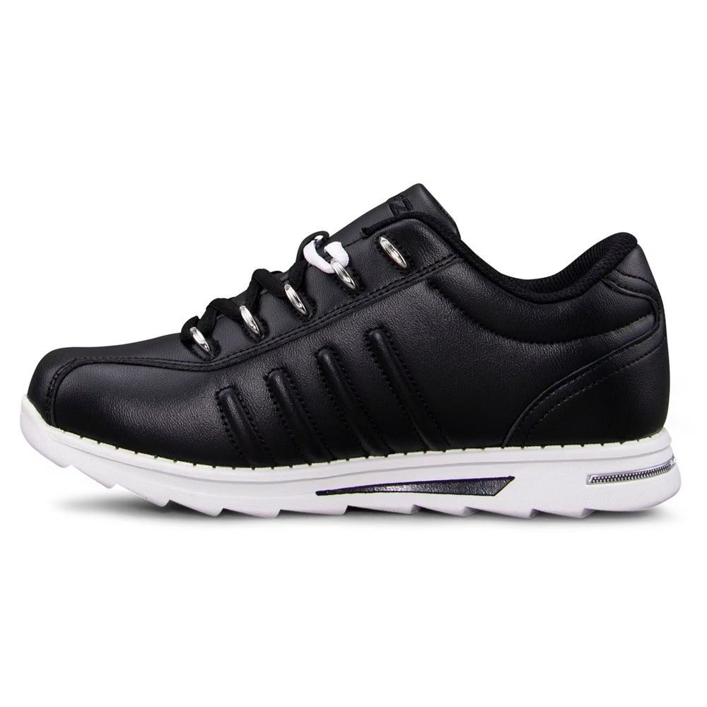 Верх из искусственной кожи в стиле кроссовок с круглым носком.