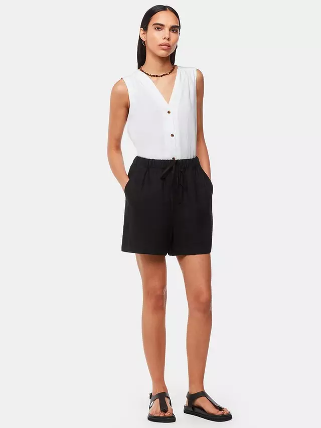 Блузка с классическим V-образным вырезом и без рукавов выполнена из льна, что обеспечивает комфорт в теплую погоду и идеально подходит для непринужденного дневного ношения.