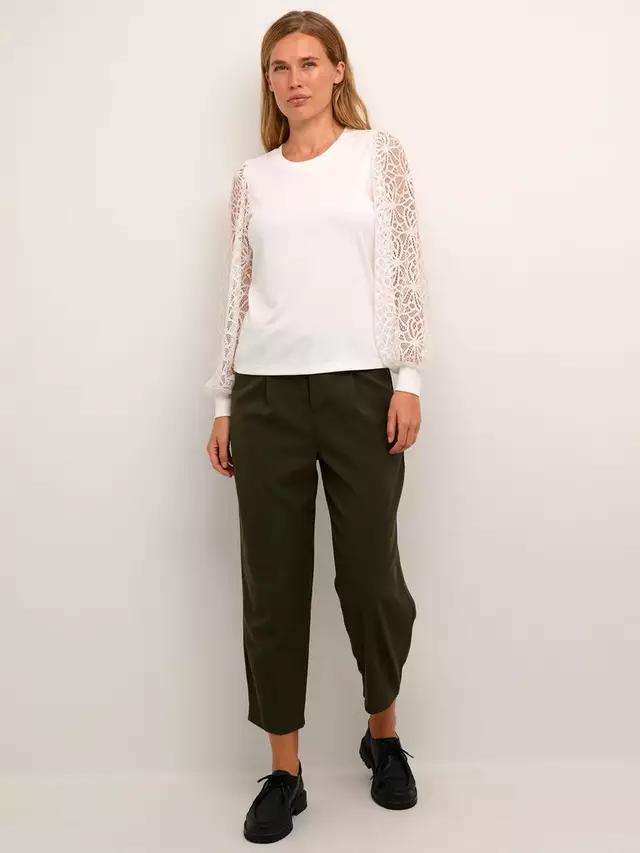 Блузка Becca — это простой и элегантный топ из джерси, который можно носить с любым нарядом для создания женственного образа. Рукава выполнены из прозрачной ткани с цветочным кружевом и собраны в трикотажные манжеты. Блузка имеет круглый вырез, стандартный крой и разрез на бедрах.