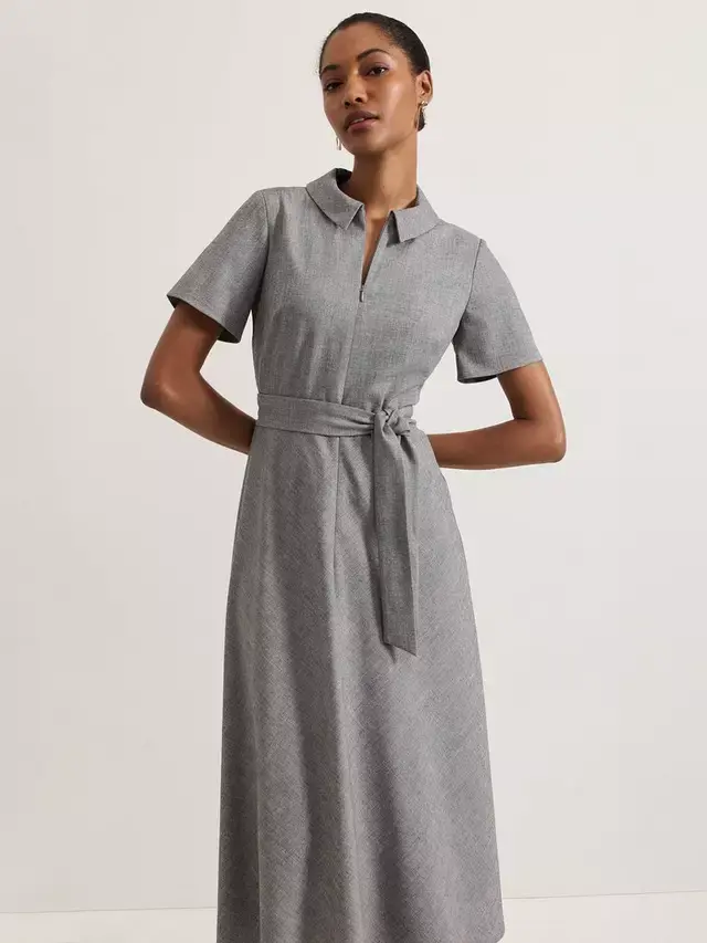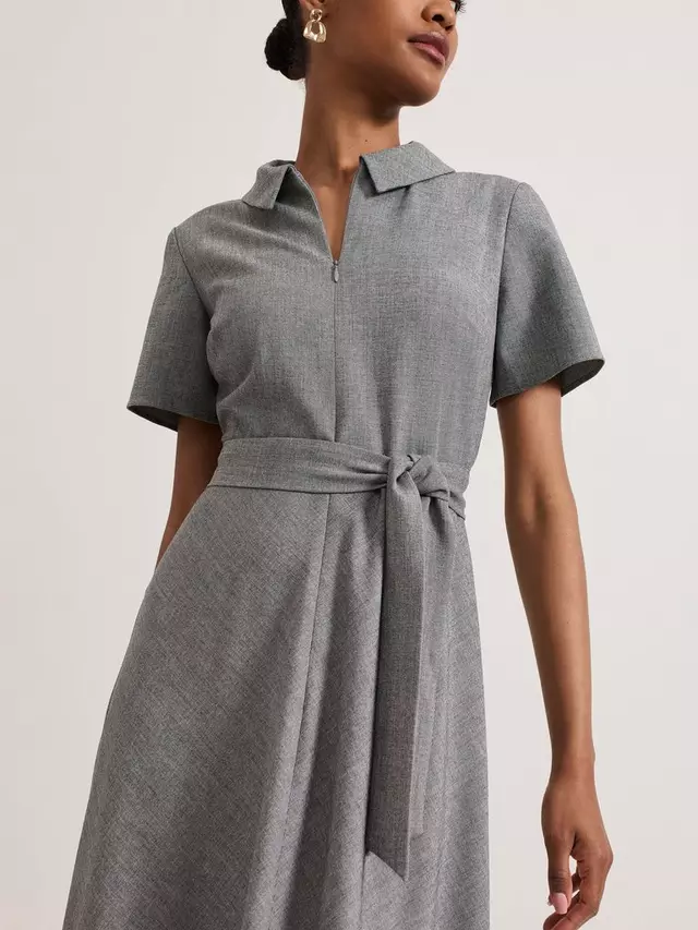 Платье Silvia от Phase Eight, выполненное в классическом оттенке, отличается классическим воротником, короткими рукавами и молнией спереди для универсального стиля. Соответствующий пояс-завязка подчеркивает талию, спускаясь к юбке миди, создавая современный женственный стиль.