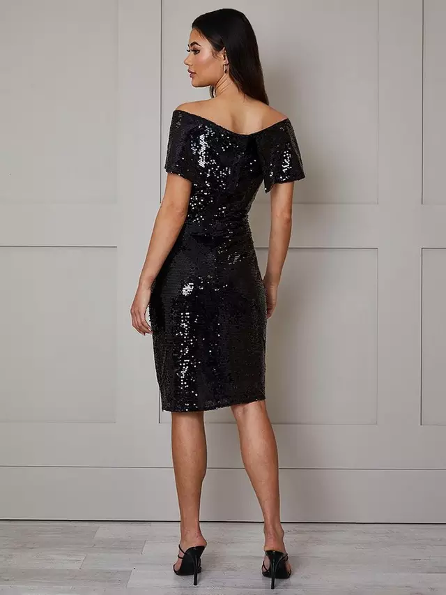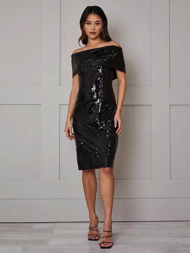 Платье Chi Chi London Sequin Bardot, черный