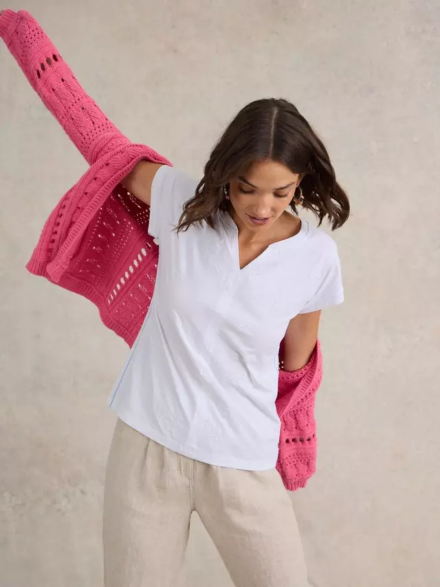 Эту однотонную футболку от White Stuff можно носить отдельно или в качестве основного предмета гардероба в сочетании с другими вещами. Она имеет V-образный вырез и короткие рукава, изготовлена из мягкого и дышащего хлопка и станет неотъемлемой частью повседневного гардероба.