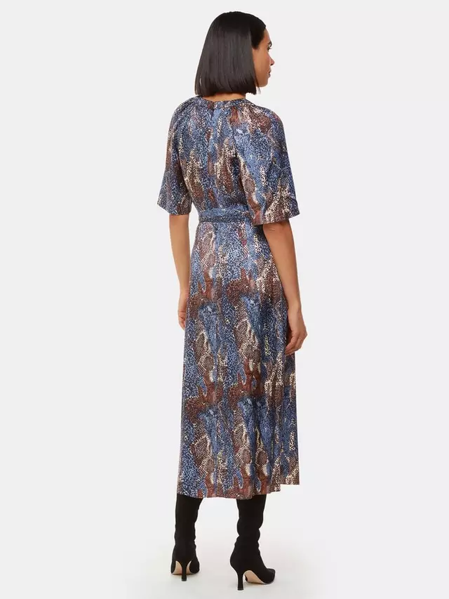 Это платье миди с V-образным вырезом от Whistles, выполненное в непринужденном стиле А-силуэта с поясом на талии, выполнено из жидкой вискозы. Подняв змеиный принт на новый уровень с помощью комбинированной блестящей отделки, оно идеально подходит для вечерних мероприятий.