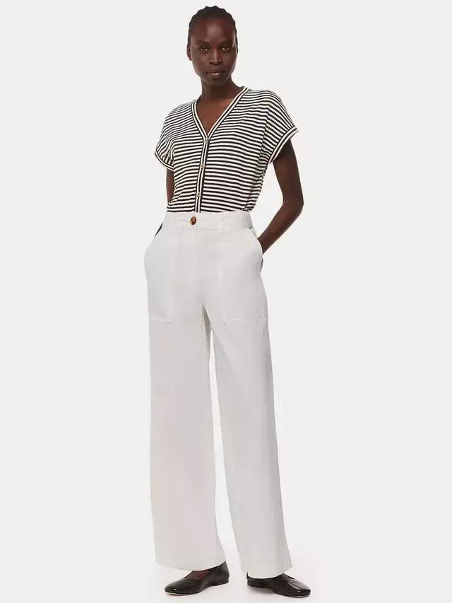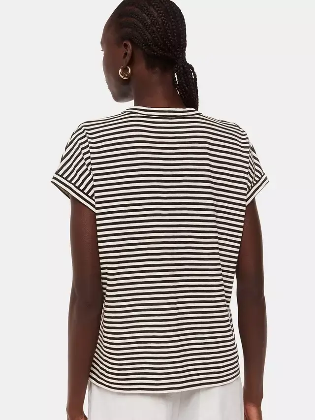 Эта футболка от Whistles подойдет для повседневного образа на каждый день. Она подчеркивает фигуру своим полосатым узором.