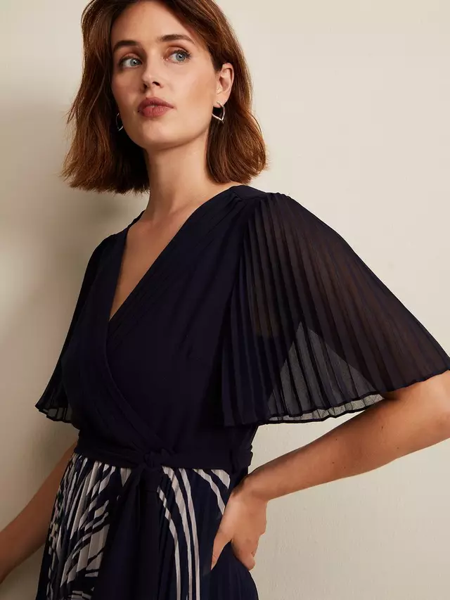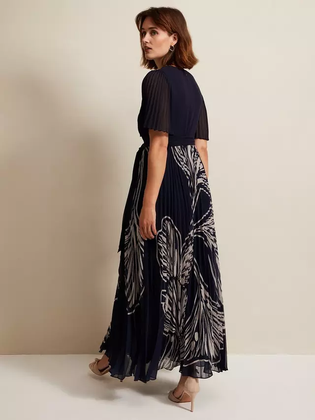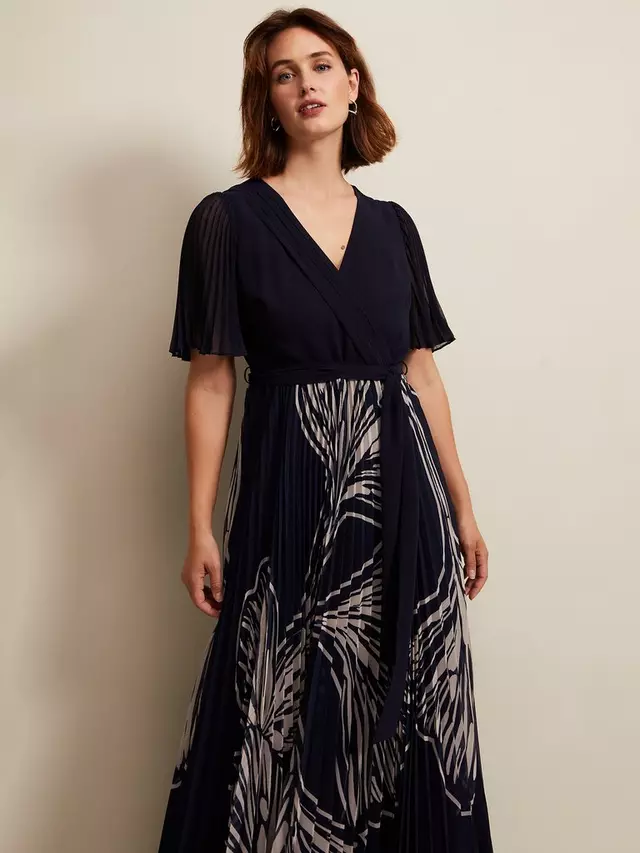 Отмечая игривый плиссированный дизайн, это платье длиной до пола от Phase Eight выполнено из синтетической ткани. Этот стиль, который легко подчеркивает фигуру благодаря непринужденному V-образному вырезу и коротким рукавам, увенчан принтом в виде листьев.