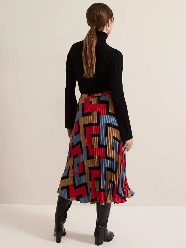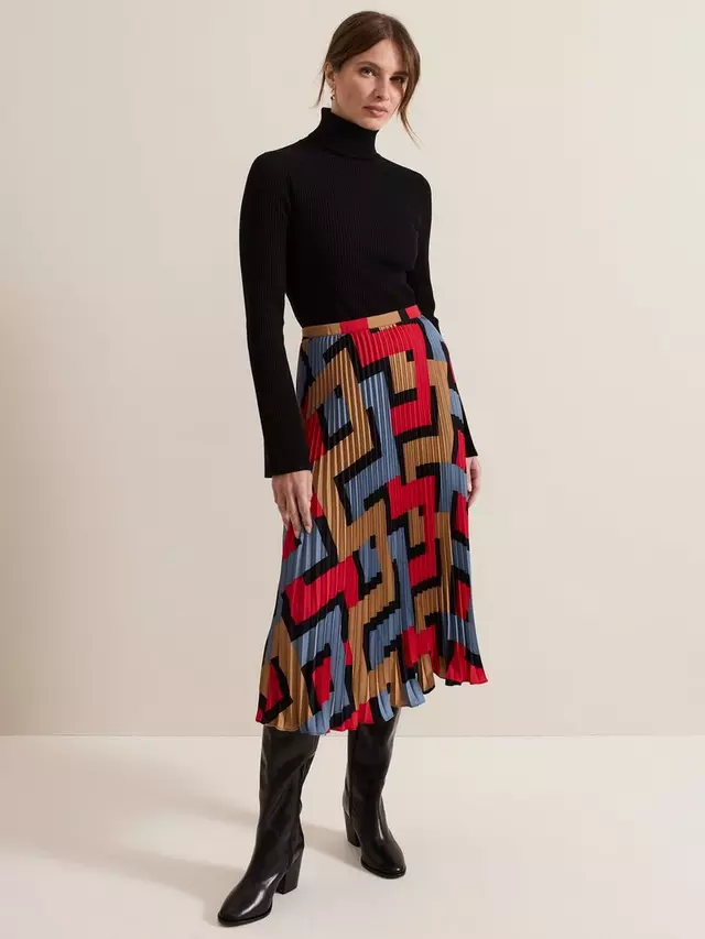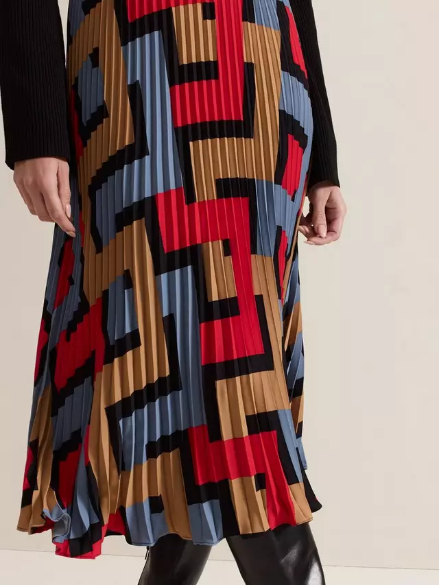 Эффектная юбка сезона. Наша горячо любимая юбка Elmina с новым смелым геометрическим принтом на подкладке, полностью плиссированная и ниспадающая до струящейся длины миди, создающая яркий женственный стиль, который подойдет вам и на работу, и на выходные.