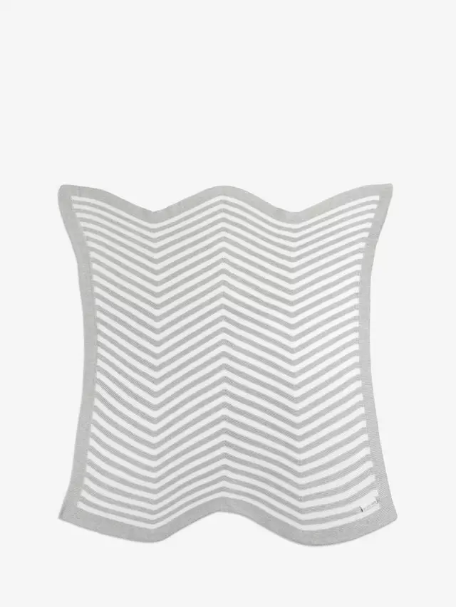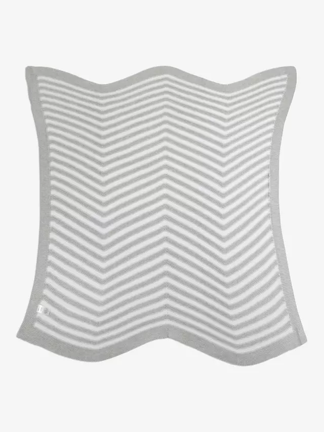 Сделанное из 100% супермягкого хлопка, это классическое шевронное вязанное детское одеяло идеально подходит для того, чтобы надеть его на коляску, когда вам нужен дополнительный слой тепла. Поставляется в ленте, что делает его идеальным подарком ребенку.
