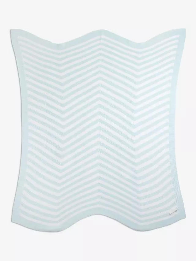 Сделанное из 100% супермягкого хлопка, это классическое шевронное вязанное детское одеяло идеально подходит для того, чтобы надеть его на коляску, когда вам нужен дополнительный слой тепла. Поставляется в ленте, что делает его идеальным подарком ребенку.