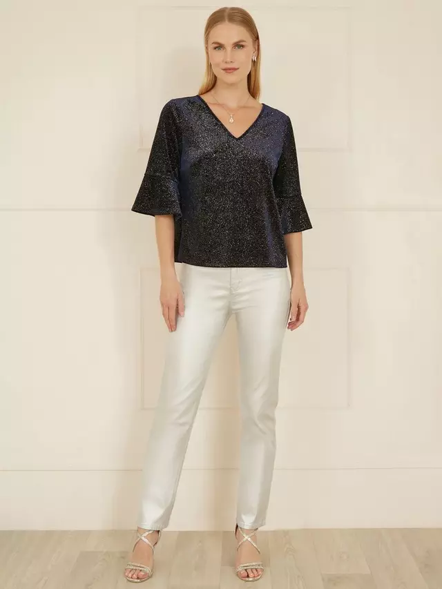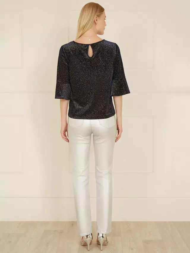 Блуза Yumi Sparkle Velvet Fluted Sleeve, темно-синий 6 101₽