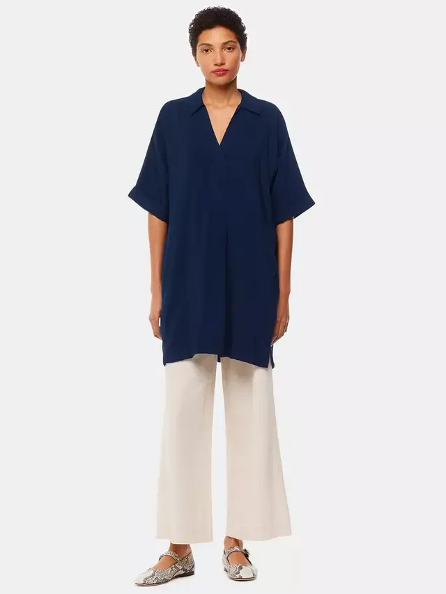 Выбирая простоту в лучшем виде, это платье длиной до бедра от Whistles выполнено из легкой вискозной смеси. С простым, но элегантным V-образным вырезом и рукавами длиной до локтя оно обязательно станет ключевым дополнением к вашему образу.