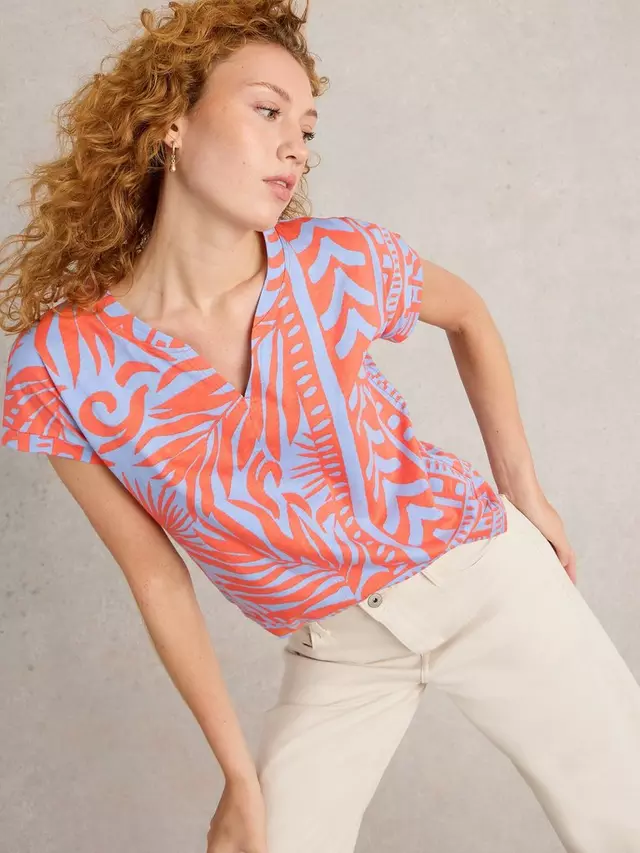 Топ White Stuff Nelly Leaves Notch Neck, цвет coral/blue