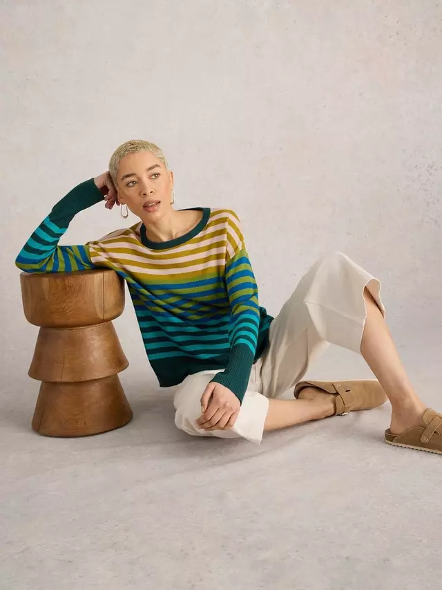 Джемпер White Stuff Olive Stripe Organic Cotton Blend, цвет green/multi