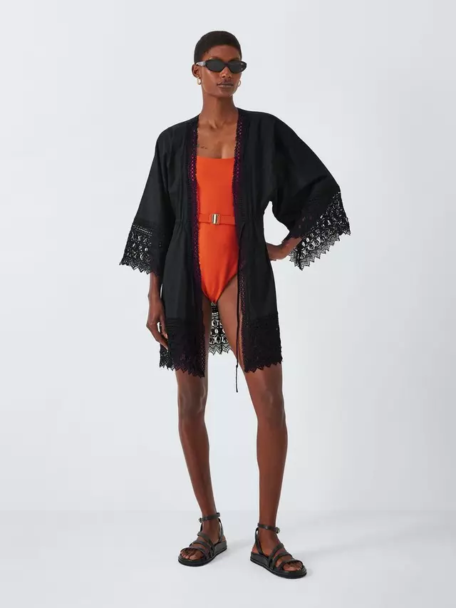 Кафтан John Lewis Lace Trim Cotton, черный 9 737₽