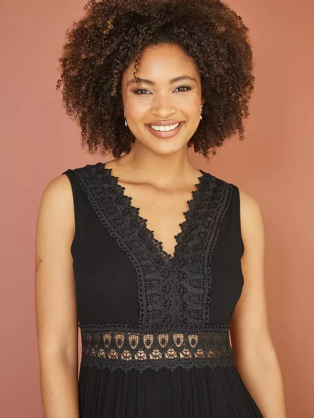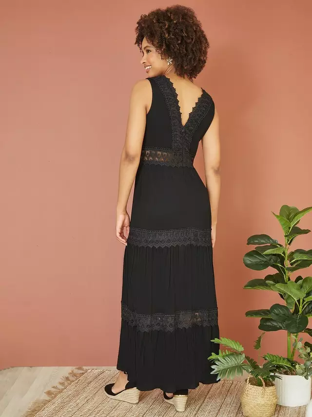 Платье Yumi Lace Trim Cotton Maxi Sundress, черный