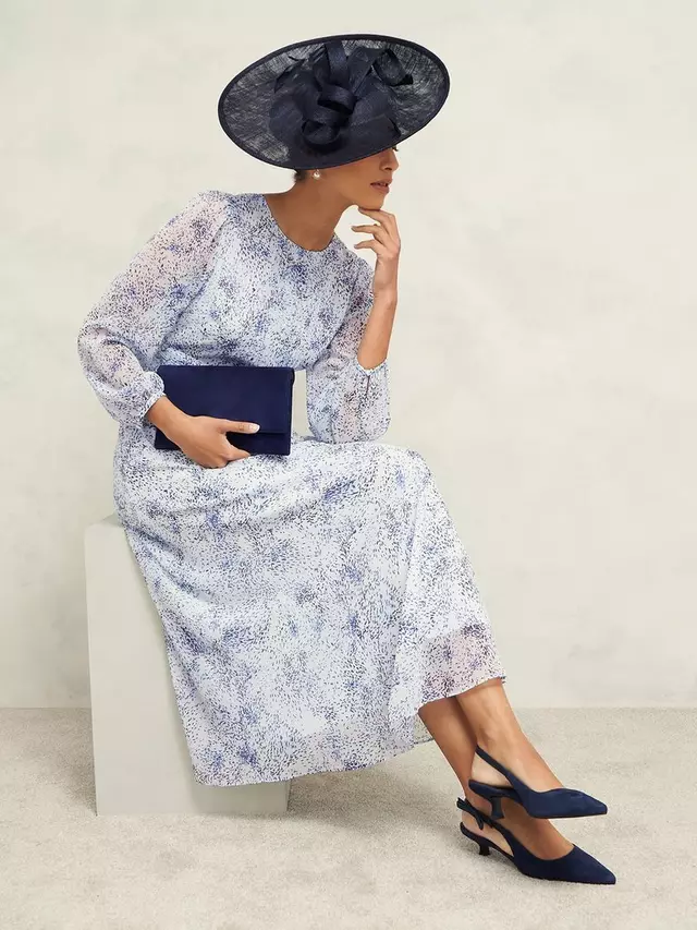 Эта пара обуви от Hobbs в традиционном придворном силуэте выполнена из замши, что обеспечивает ее долговечность и комфорт. Туфли на невысоком каблуке имеют заостренный носок, придающий образу остроту.