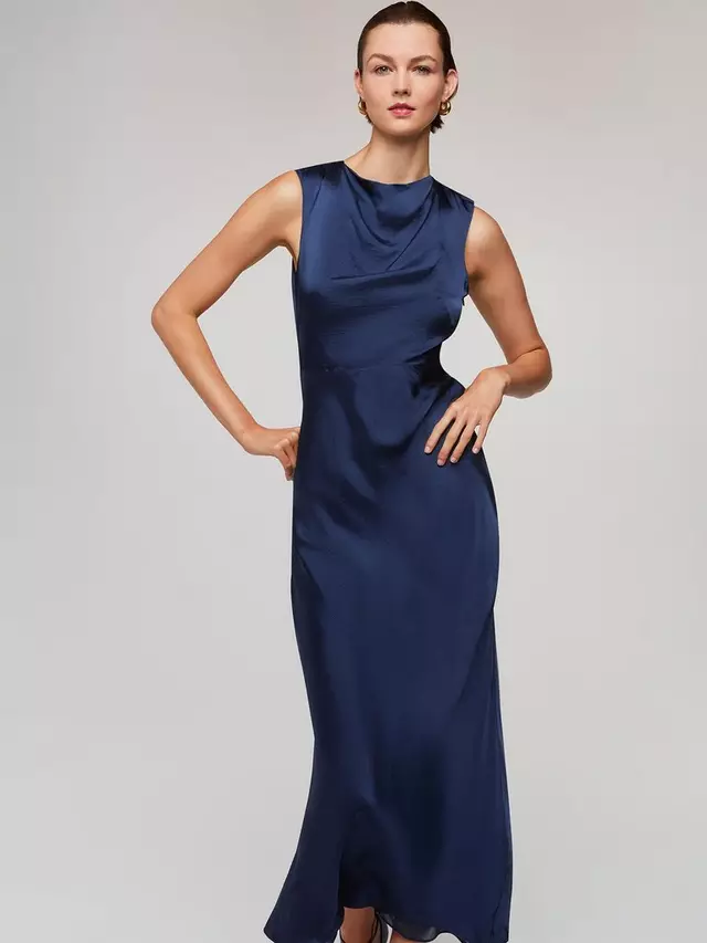 Платье Whistles Cowl Neck Satin Maxi, темно-синий