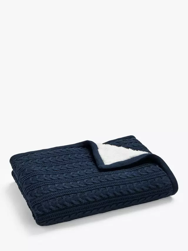 Плед John Lewis Kids' Cable Knit Sherpa Fleece, темно-синий 6 984₽