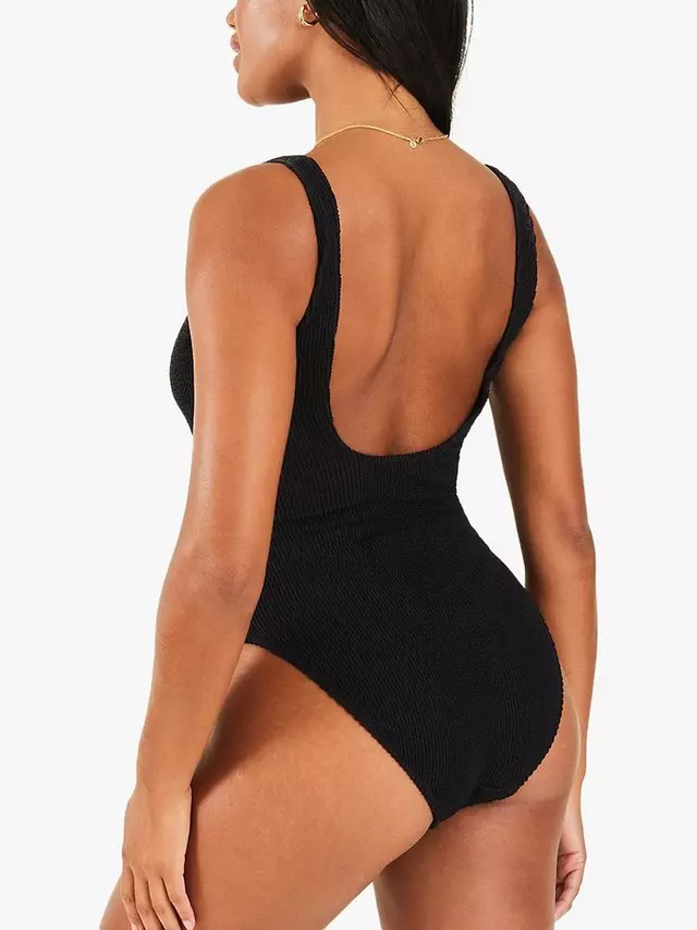 Этот купальник с мятой отделкой от Accessorize с классическим круглым вырезом, глубоким вырезом на спине и высокими штанинами мгновенно подготовит вас к купанию.