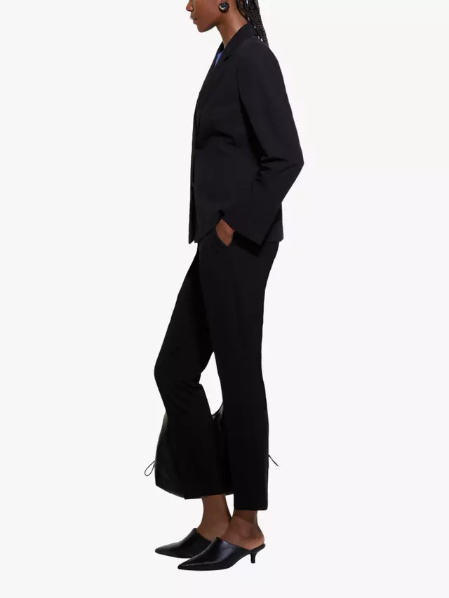 Однобортный пиджак из эластичной вискозной смеси с мотивом на боковых панелях. Низкие лацканы, застежка на две пуговицы и два передних прорезных кармана.