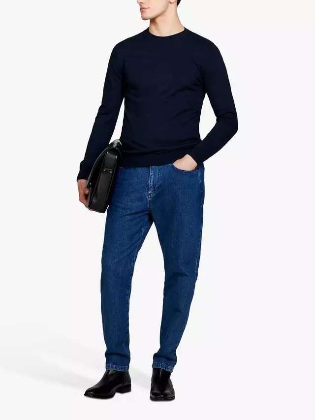 Джемпер SISLEY Slim Fit Crew Neck Cotton Blend, темно-синий