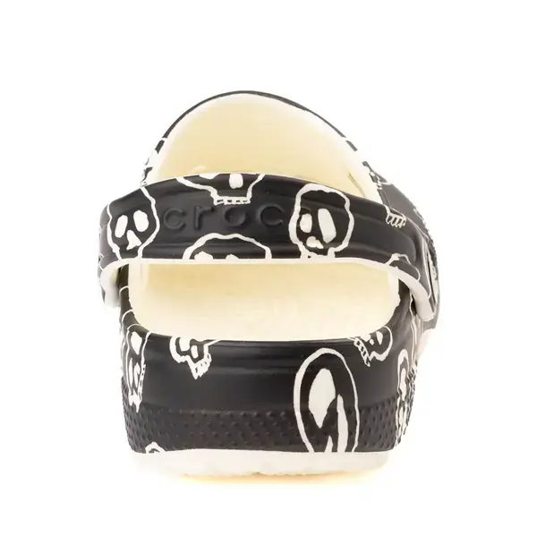 Особенности Конструкция, подходящая веганам Полностью формованная и легко очищаемая конструкция из пеноматериала Crocs Croslite Светящийся в темноте принт черепа по всей поверхности Вентилируемая передняя часть стопы обеспечивает улучшенную воздухопроницаемость и не допускает скопления воды и мусора после ваших приключений Ремешок на пятке обеспечивает легкую и надежную посадку Плавучая, водонепроницаемая и устойчивая к запахам конструкция Легкая, не оставляющая следов подошва обеспечивает гибкое сцепление