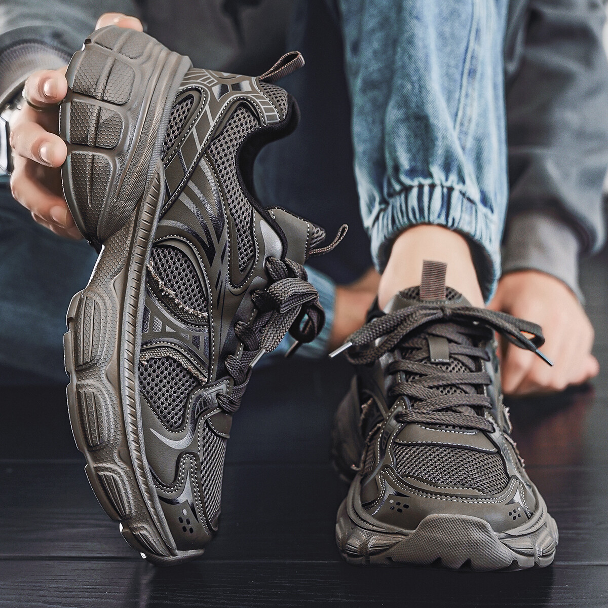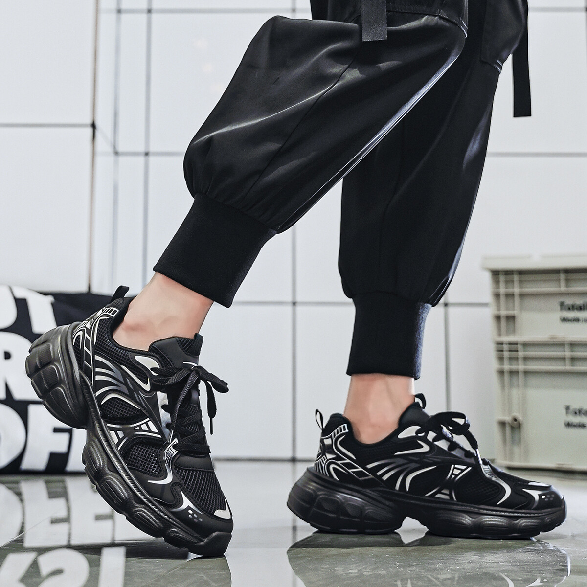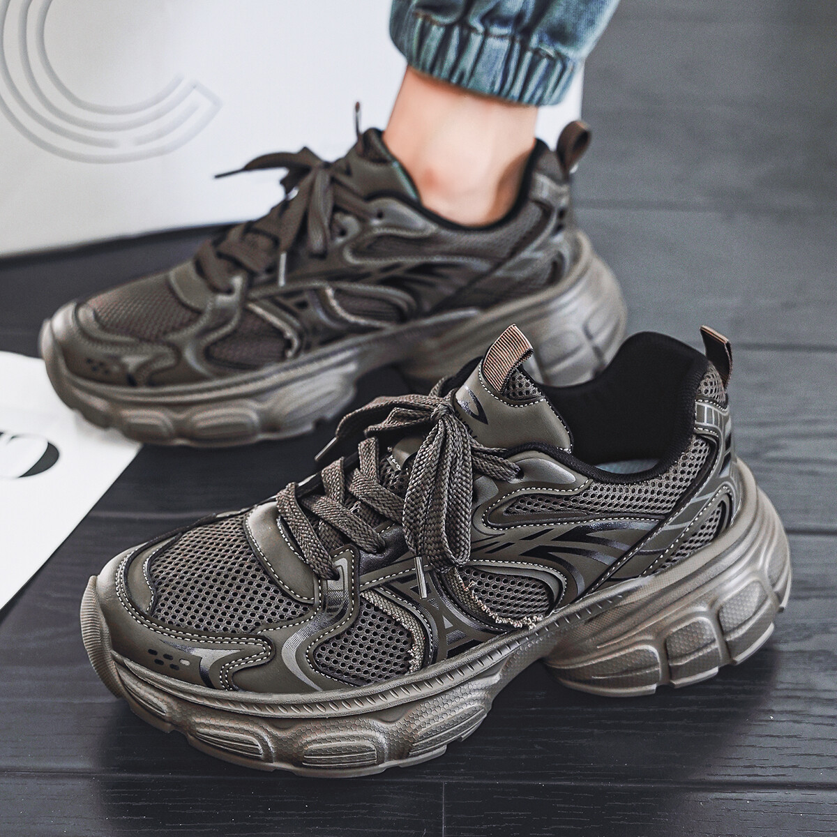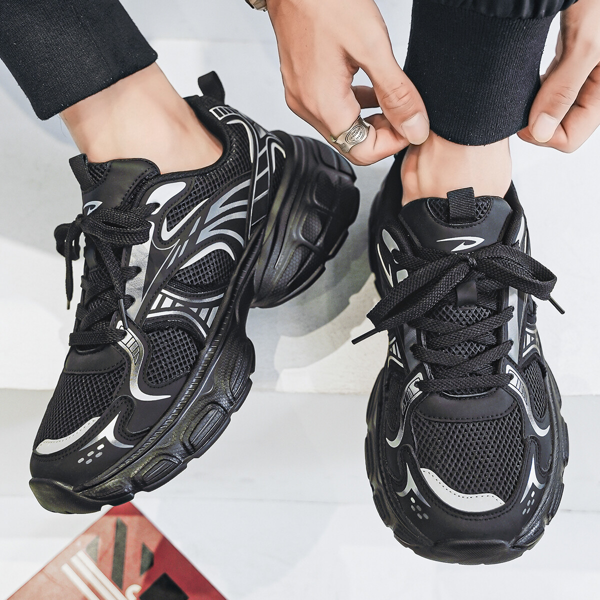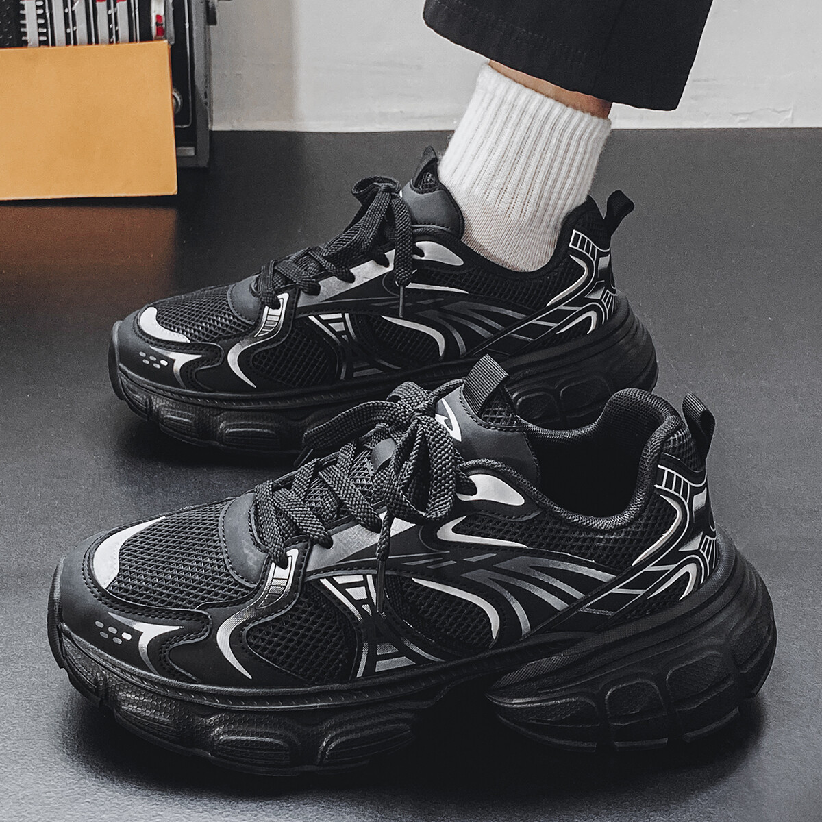 Кроссовки мужские толстые низкие Deerway, черный