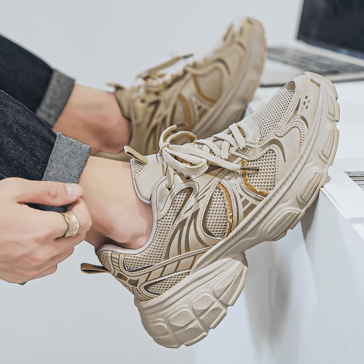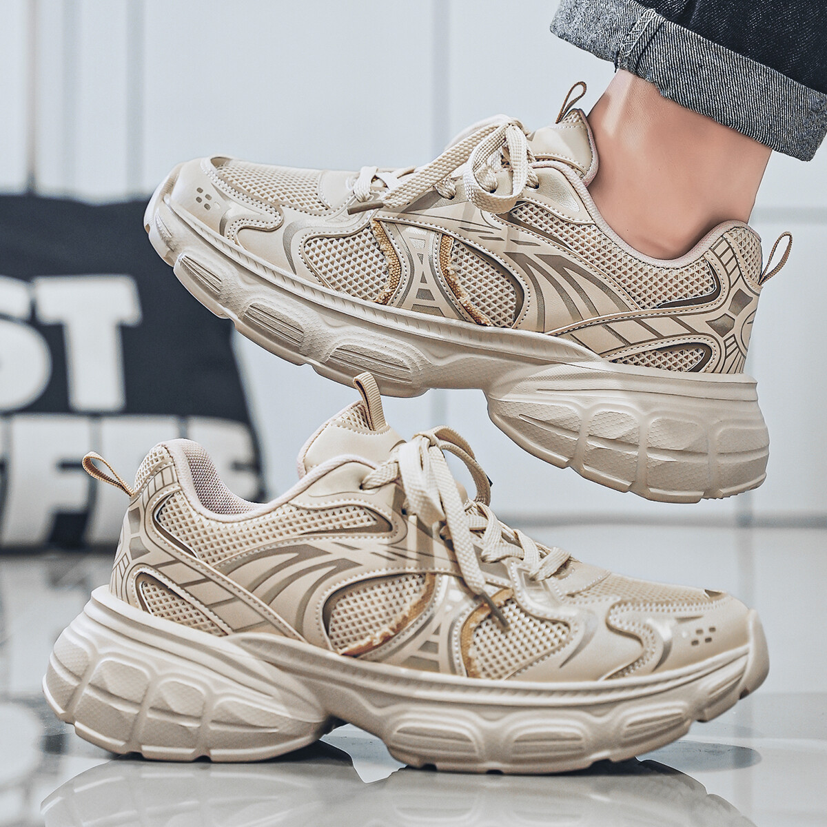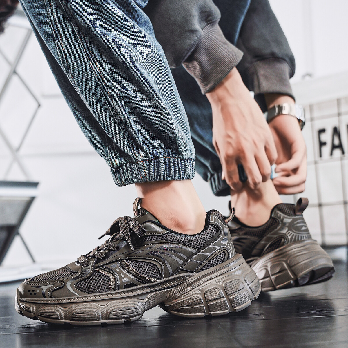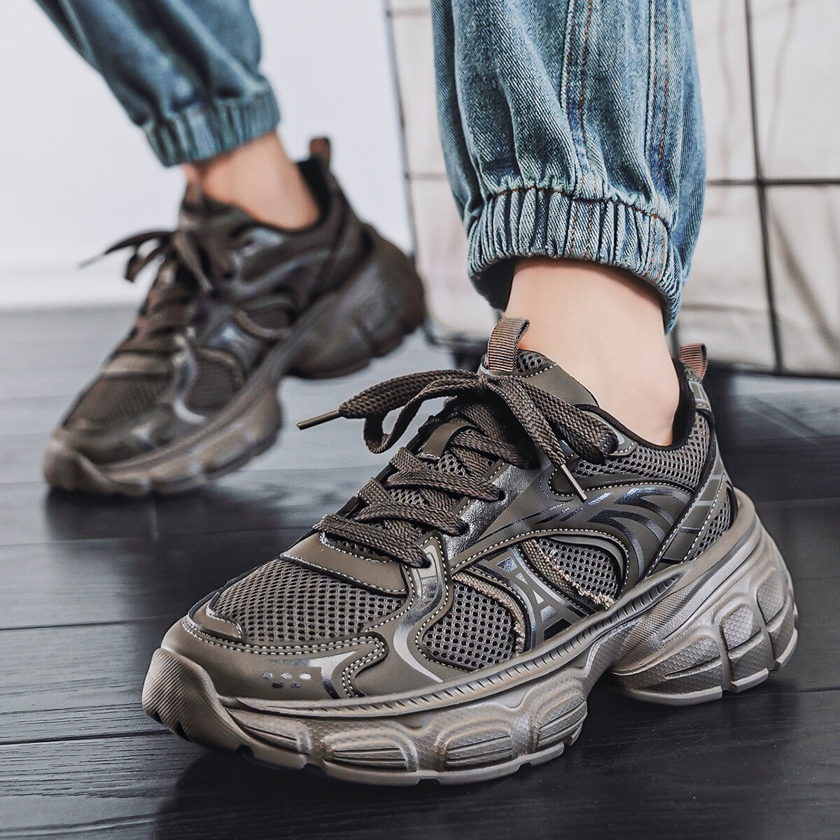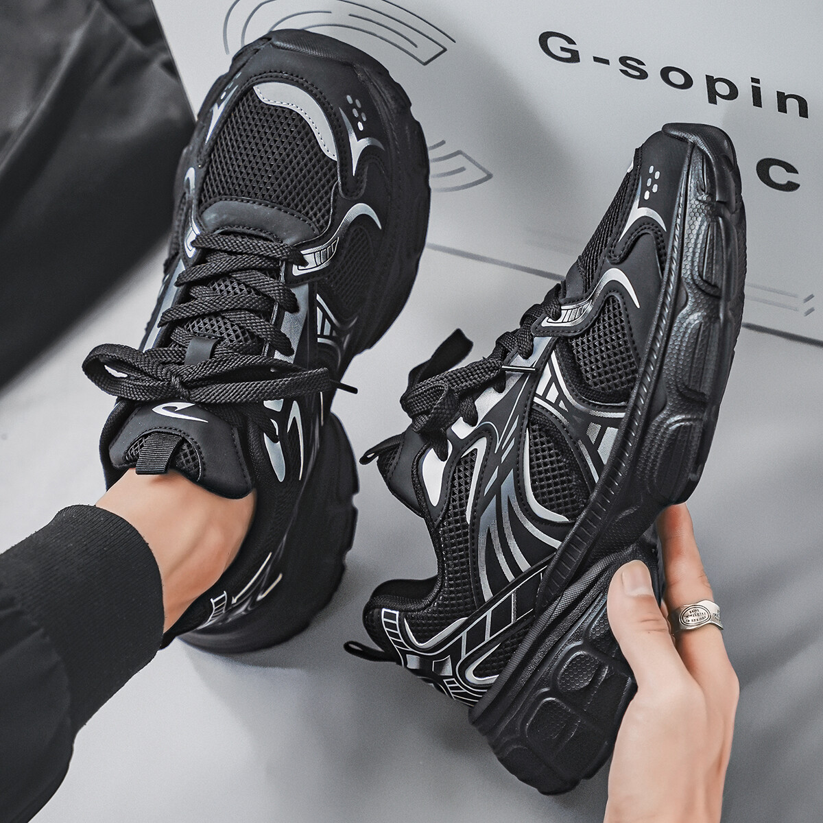 Кроссовки мужские толстые низкие Deerway, черный