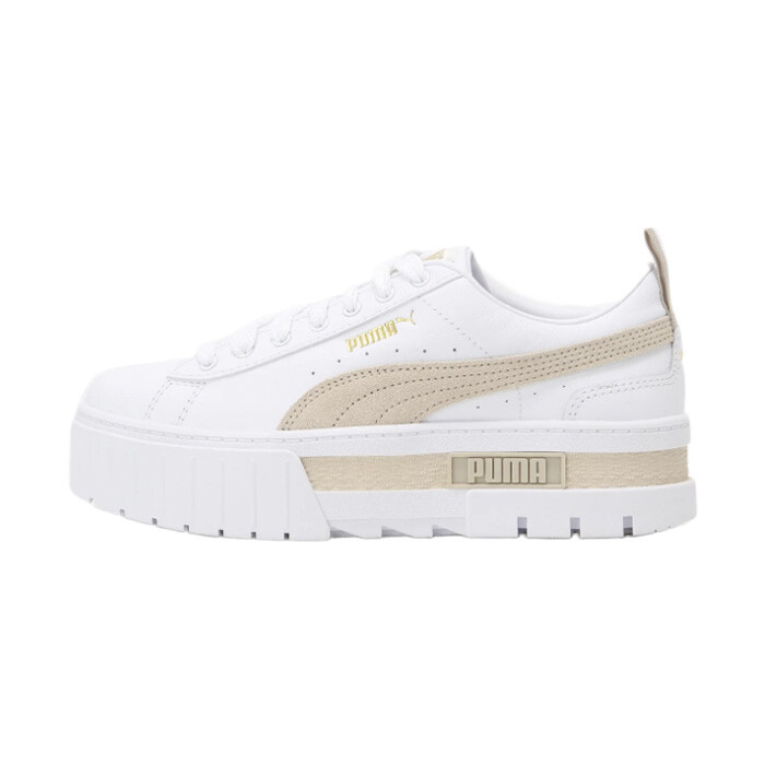 Кеды Puma Mayze – воплощение уличного стиля, взрывное сочетание городского гламура и спортивного шика. Массивная многослойная подошва и кожаный верх делают эту обувь эффектной. Тисненые металлизированные детали придают нотку изысканности. Продуманные элементы дизайна, такие, как глянцевые люверсы и тканевая петелька на пятке, благодаря которой кеды легче надевать и снимать, выступают завершающими штрихами.