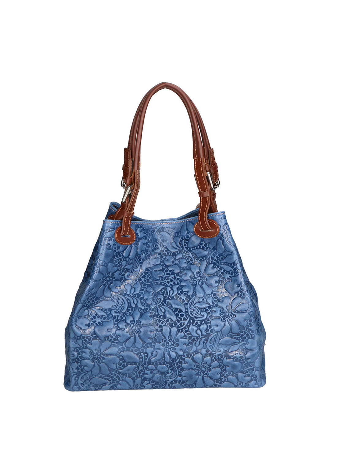 Двойная женская сумочка со съемным регулируемым ремнем через плечо. Итальянское изделие ручной работы из натуральной кожи с цветочным тиснением. Сделано в Италии